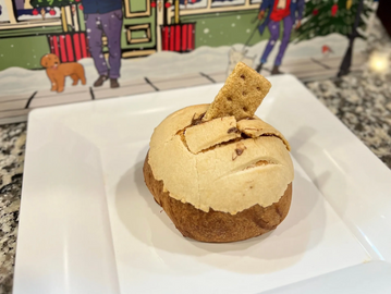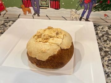 Ingredients: flour, sugar, butter, condensed milk, egg, vanilla extract, biscoff cookies, yeast, salt. CONTAINS: WHEAT, MILK. EGG