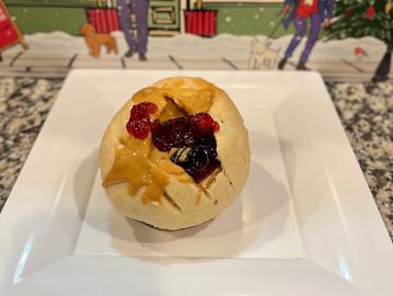 Ingredients: flour, sugar, butter, condensed milk, egg, vanilla yeast, salt. peanut butter, grape jelly. CONTAINS: WHEAT, MILK. EGG. PEANUTS